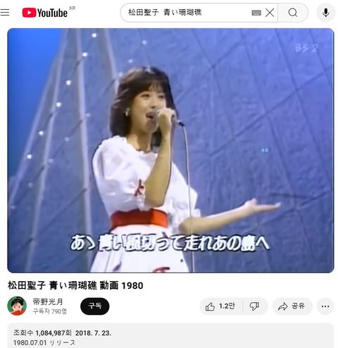 (사진1 설명) 마츠다세이코(松田聖子) - 푸른산호초(青い珊瑚礁) 1980년