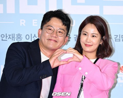 [OSEN=이대선 기자] 28일 오후 서울 용산구 CGV용산아이파크몰에서 영화 '리바운드(감독 장항준)’ VIP시사회가 열렸다.개그맨 김준호와 김지민이 포토타임을 가지고 있다. 2023.04.03 /sunday@osen.co.kr