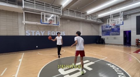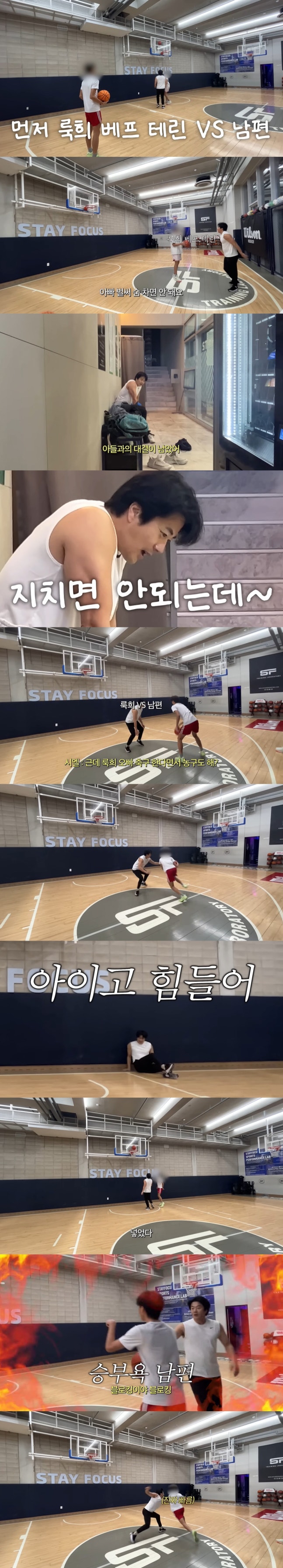 손태영은 "룩희는 '아빠가 못 이길거다'고 하고, 아빠는 '내가 이길거다'고 하더라"며 "아이들을 이겨보겠다고 지금 왔다"며 농구 대결을 시작했다.