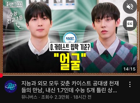 근데 저얼굴에 카이스트면 대단한거 아니냐... 심지어 인플루언서로도 성공하고