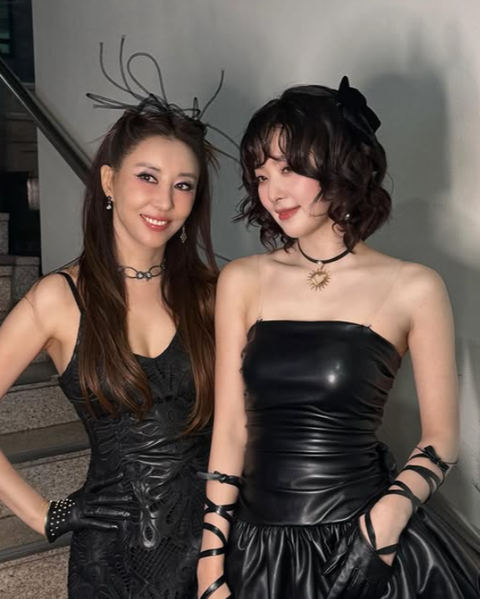 공개된 사진 속 슬기와 김완선은 올 블랙의 무대 의상을 입고 있으며, 마치 한 그룹인 듯 완벽한 케미를 자랑했다.