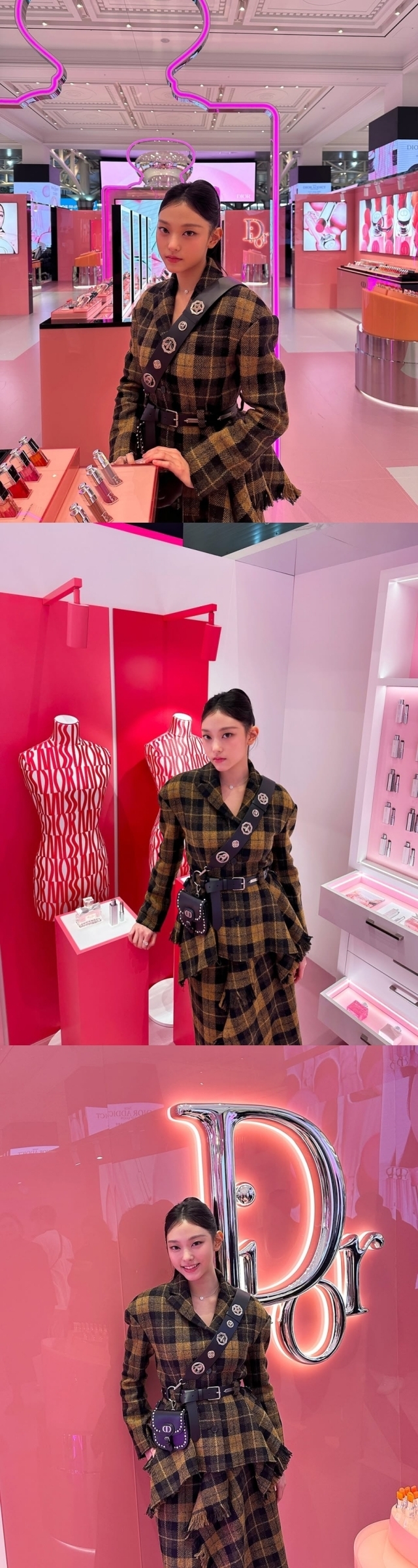 18일 뉴진스 공식 계정에는 앰배서더로 활동 중인 명품 브랜드 D사의 팝업스토어를 다녀온 해린의 사진이 다수 공개됐다.