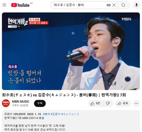 (사진3 설명) 최수호(チェスホ) vs 김준수(キムジュンス) - 봄비(春雨)|현역가왕2 7회