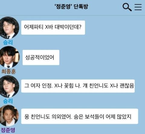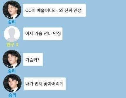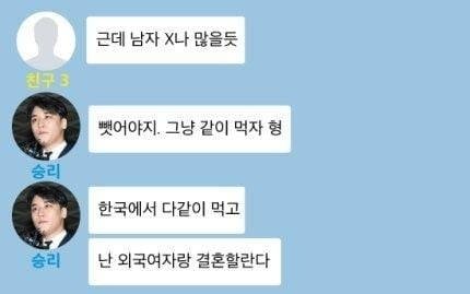 자기 친구들이랑만 두면 인격 바꾸는 거 너무 소름돋음 승리 여친들도 승리가 저런 사람인지는 몰랐을텐데 승리랑 승리여친들이 나눈 카톡 보면 ㄹㅇ 걍 너무 다정한 여친바라기1임