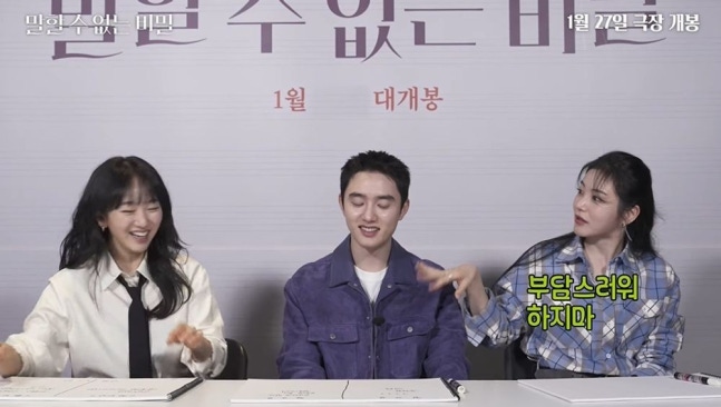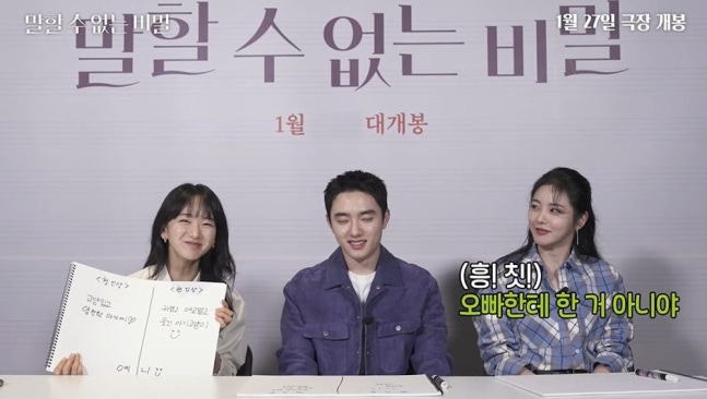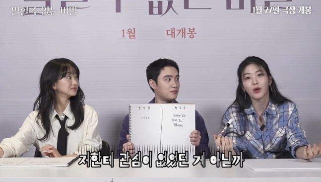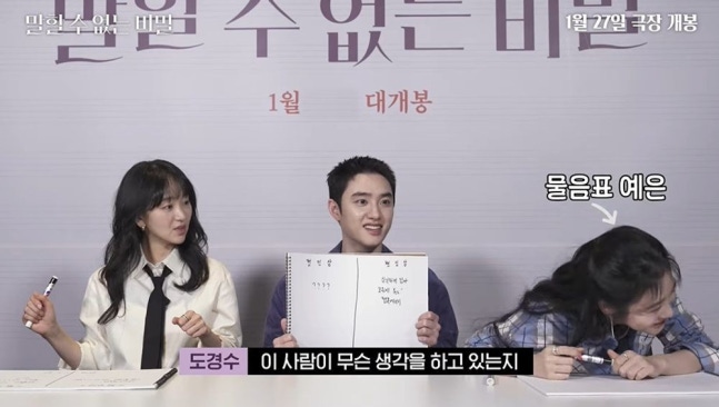 지난 18일 유튜브 채널 '하이브미디어코프'에는 영화 '말할 수 없는 비밀'의 주역 도경수, 원진아, 신예은이 등장했다.