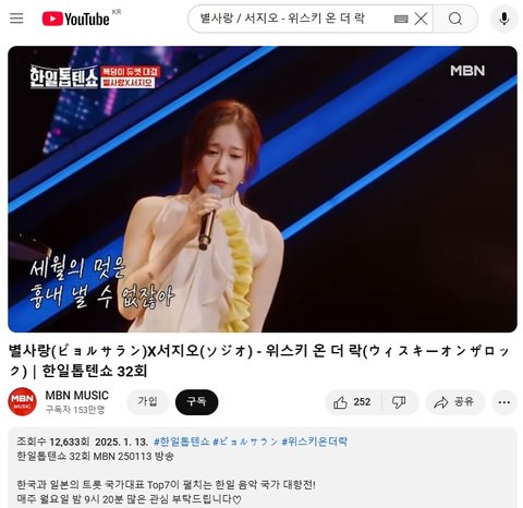 (사진3~5 설명) 별사랑(ビョルサラン)X서지오(ソジオ) - 위스키 온 더 락(ウィスキーオンザロック)|한일톱텐쇼 32회