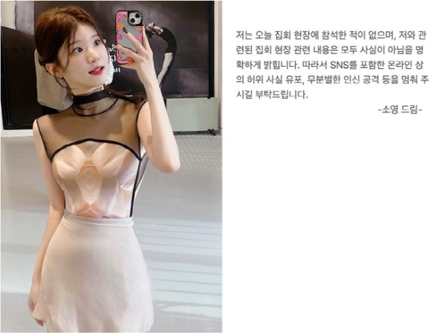 애꿎은 피해자까지 발생했다. 박소영 MBC 아나운서는 윤석열 대통령 구속영장 발부에 반대하는 시위에 참석했다는 루머에 휩싸였다. 이에 박 아나운서는 "저는 오늘(19일) 집회 현장에 참석한 적 없다"면서 "저와 관련된 집회 현장 관련 내용은 모두 사실이 아님을 명확하게 밝힌다. 따라서 SNS를 포함한 온라인상의 허위사실유포, 무분별한 인신공격 등을 멈춰주시길 부탁드린다"고 했다.