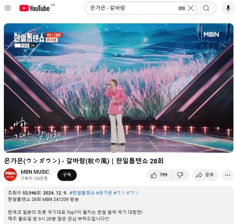 (사진2 설명) 은가은(ウンガウン) - 갈바람(秋の風)|한일톱텐쇼 28회