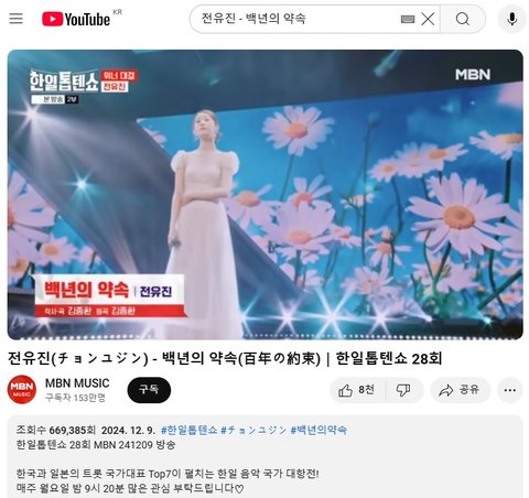 (사진3 설명) 전유진(チョンユジン) - 백년의 약속(百年の約束)|한일톱텐쇼 28회