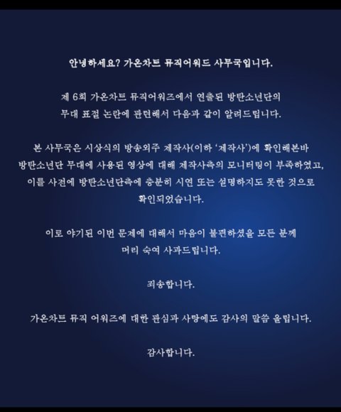 그리고 예전에 가온 뒷 화면 그냥 흔한건데 그것도 가온이 준비해서 방탄이랑 아무 상관 없는 거고 가온이 직접 해명하고 사과까지 한 거 아직도 베꼈다고 까고 있음