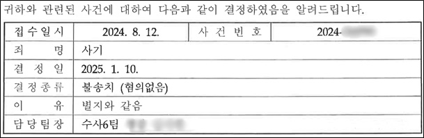 YTN star 취재 결과, 서울강서경찰서는 지난 10일 사기 혐의로 23명에게 단체 피소된 유재환에 대해 증거 불충분으로 불송치(혐의 없음) 결정을 내렸다.