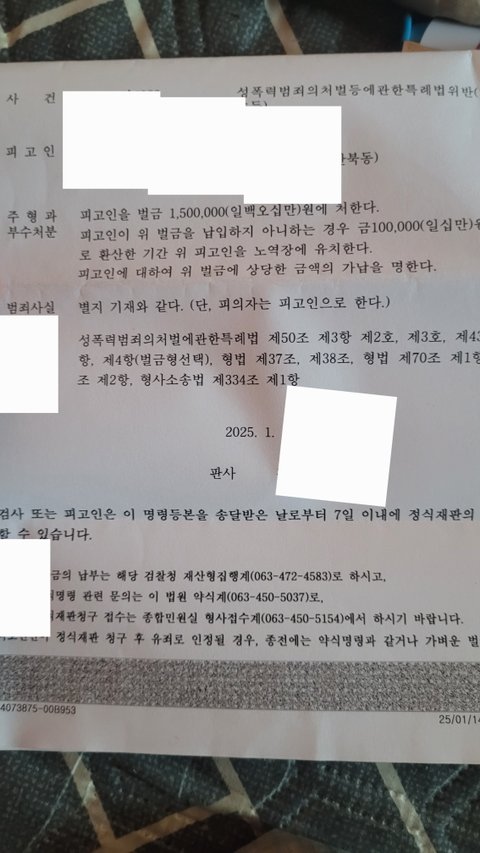 아이 씨 길게 쭉 정리했는데 왜 날라감...... 간단하게 말하면 이 판결문은 성폭력처벌특례법에서 정한 신상정보등록대상자가 신상정보를 제출하지 않아서 벌금형을 받은 거야... 성폭력처벌특례법 제50조는 벌칙조항이고 50조3항은 제43조위반에 대한 벌칙이고 제43조는 등록대상자의 신상정보제출의무에 대한 규정임..... 그리고 신상정보등록대상자는 제42조에 있는데 가볍게는 통매음이나 도촬부터 쎈건 특수강간이나 미성년자강간이나 뭐 이런것까지 해당됨 몇몇 모자란 애들이 150이면 별거 아니다 하는데...... 이건 1차 범죄로서 성범죄의 확정판결로 처벌 및 신상정보등록대상자가 되었고 이 150은 2차범죄로서 1차 판결문의 신상정보제출의무를 이행하지 않아서 처벌받은 건이기 때문에...... 이것보다 훨씬 더 높은 수위의 성범죄가 1차 범죄로서 따로 확정판결이 있었던거라 큰 문제인거다 신상정보등록대상자가 뭐냐면 니들 집에 가끔 성범죄자 알림이 같은거 날라오지않냐 거기 얼굴 이름 범죄사실 다 공개되어 날아오는 사람이라는거지 글쓴이 남편이 단순 성매매나 가벼운 통매음 같은걸로 신상정보공개명령 잘 안나와 그러니까 신상정보공개대상자라는건 꽤... 심각한 수준의 성범죄가 있었다는 증명이기도 해 글쓴이가 몰랐다면 혼인취소소송 해도 충분히 승소할만한 수준이라고 봄