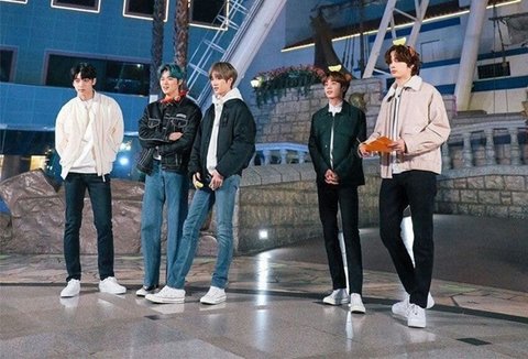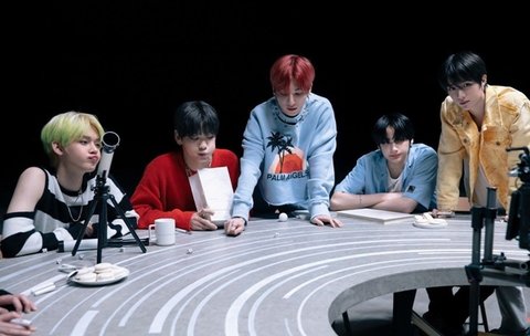 오른쪽 흰 바지가 투바투. 흔한 음방 전출 엔딩