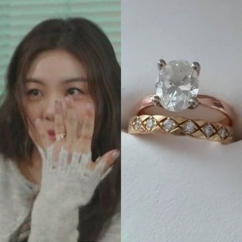 공개된 사진 속에는 알이 큰 다이아 반지가 해외 명품 브랜드 C사의 반지와 함께 레이어드 된 모습.