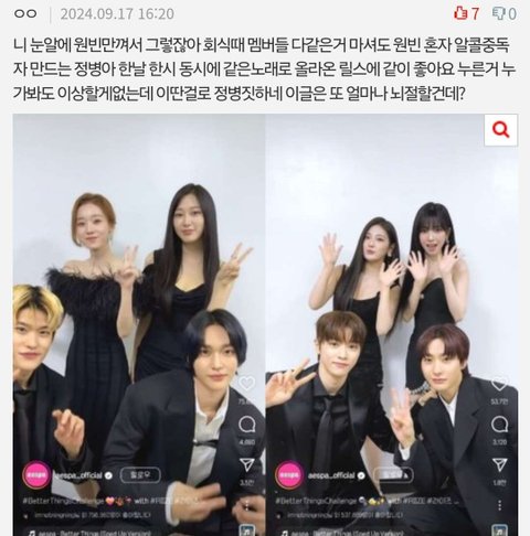 그리고 닝닝은 자기가 나온 릴스 아니면 좋아요 안누르는데 원빈 소희 윈터 지젤이 같이 찍은 릴스에 좋아요 누름