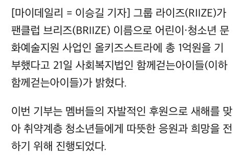 아직 신인인데 대단하다 그냥 혼자? 개인적으로 한 게 아니라 뭔가 멤버들 다같이 뜻이맞아서 기부했다는게 대단한듯