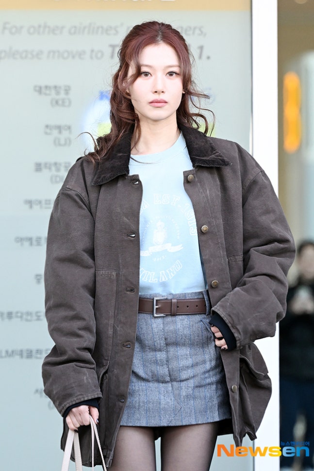 사나이날 사나는 빈티지한 무드의 재킷에 미니스커트를 매치해 러블리하면서도 캐주얼한 매력을 발산했다. 강한 컬이 돋보이는 반묶음 헤어스타일은 사나의 인형 같은 비주얼을 돋보이게 한다. 사나의 시원시원한 팔다리와 뚜렷한 이목구비도 눈길을 끈다.