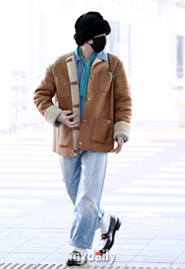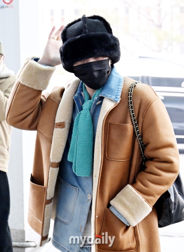 이 과정에서 선보인 지드래곤의 공항 패션이 또 한 번 시선을 끌었다. 최근 여러 차례 착용해 유행을 이끈 할머니 스카프 대신 무스탕에 군밤 장수 모자를 매치해 포근하면서도 세련된 무드를 완성한 것. 안에는 데님 팬츠와 셔츠로 청청 패션을 착용했다. 포인트가 되는 민트색 니트 스카프도 그의 패션을 돋보이게 했다.