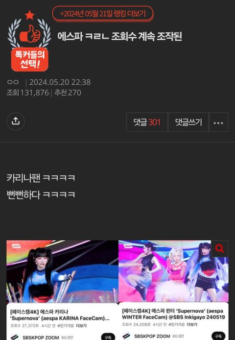 카리나팬들 진짜 뻔뻔하다ㅋㅋ