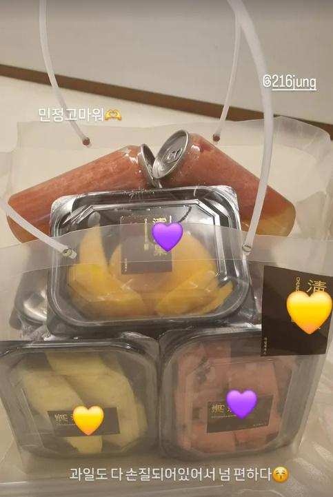 이정현 소셜미디어사진은 정성껏 포장된 과일 세트와 옷의 모습이 담겼다.