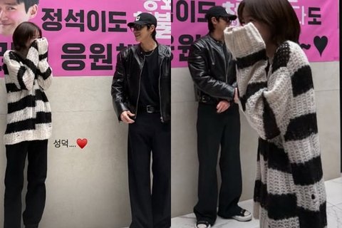 스트라이프 니트를 입은 박지현은 아담한 체구로 귀여운 매력을 뽐내고, 유노윤호는 가죽재킷에 볼캡으로 훤칠한 남친룩을 선보였다. 유노윤호가 영화 '동화지만 청불입니다'에서 박지현과 호흡을 맞춘 슈퍼주니어 최시원을 응원하기 위해 함께한 모습도 훈훈한 분위기를 자아낸다.