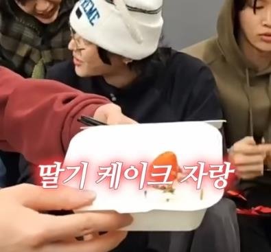 딸기 오물거리는 중인데 소희가 자기 케이크 챙기려는 걸 봄