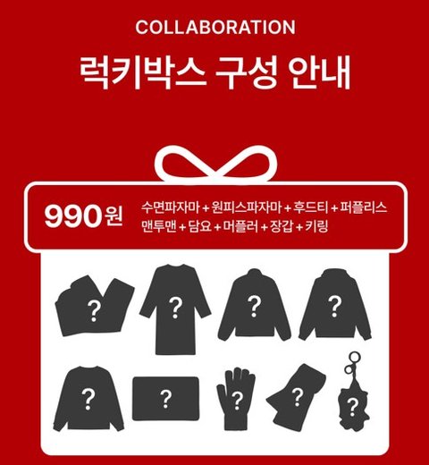 스파오 콜라보 럭키박스 1월 24일까지 3일간 진행하는건데