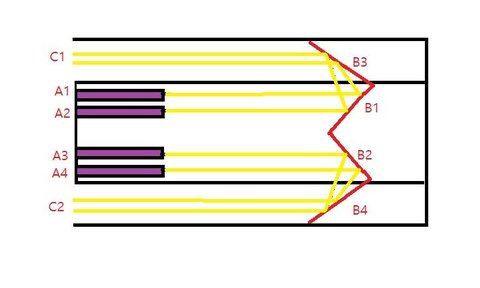 레이저가 A1 ~ A4 까지 있는데, 반사판 B1~B4에 닿아 반사되면서 추력을 얻는거야.