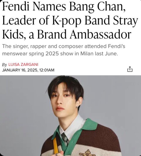 맏형이자 리더 방찬 펜디 엠버서더에 이어서