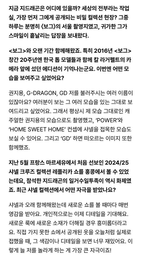 지디 보그 2월 화보랑 인터뷰 풀버전 뜸!!