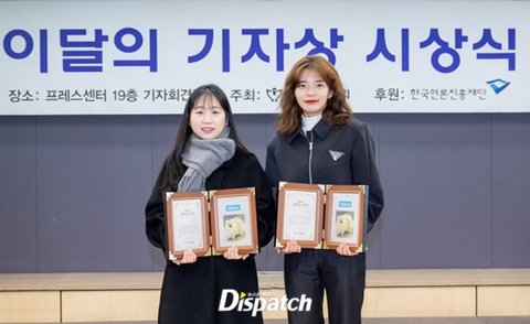 '디스패치' 사회연예부 김지호·김소정 기자가 제412회 이달의 기자상(취재보도 2부문)을 수상했다.