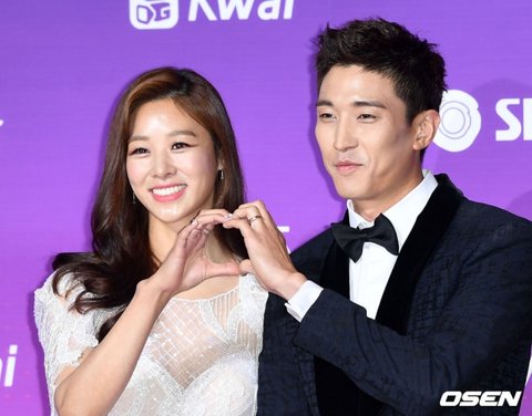 [OSEN=이대선 기자] 30일 오후 서울 상암동 SBS 프리즘 타워에서 '2017 SBS 연예대상' 레드카펫 행사가 열렸다.배우 장신영, 강경준 부부가 레드카펫을 밟고 있다./sunday@osen.co.kr