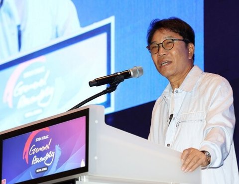 이수만 전 SM엔터 총괄 프로듀서가 개인회사 블루밍그레이스, 컬쳐테크놀로지그룹아시아, 리폴룩스에서 대표직을 내려놓은 것으로 확인됐다. 2024년 5월 30일 서울 콘래드호텔에서 열린 국제저작권관리단체연맹 세계총회에서 기조연설을 하는 모습. 사진=연합뉴스