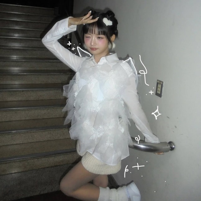 사진 속 레이는 뿌까 머리와 하트 핀을 매치해 매력을 한층 끌어올렸으며, 순백의 무대 의상과 흰 귀걸이 역시 전체적으로 통일감을 이뤘다. 더불어 직접 이모티콘을 붙이거나 그림을 그려 꾸민 사진은 레이만의 감성을 돋보이게 했다.