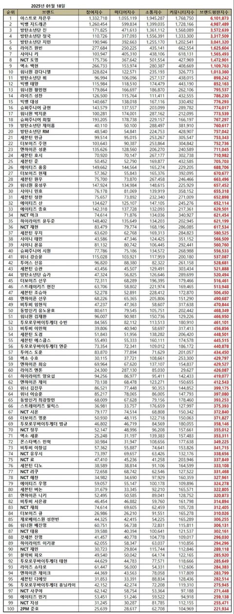 2025년 1월 보이그룹 개인 브랜드평판 15위 순위는