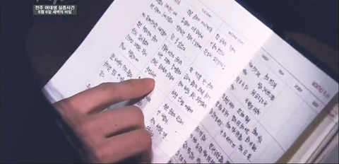 S군이 지목한 그 곳에, 박스 안에 그 수첩이 있었고 그것을 본 언니는 놀라며 그걸 그대로 들고 나와 경찰서에 갖다주게 됩니다. 이 상황을 모두 함께 S양이 목격했습니다.