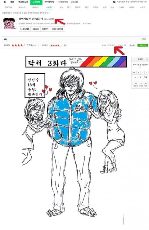 네이버 도전만화에 보이지 않는 3단발차기 연재했었음 니앰 마트 장애인같다 빡촌리더 워딩넣음
