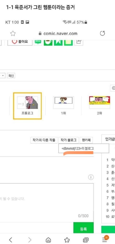 친동생이 육준서가 그린 웹툰에 댓글도 닮