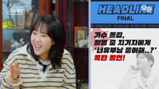 마지막으로 폴킴은 '생각해둔 헤드라인이 있냐'는 질문에 "어그로성으로 해야 하나. '지예은 너 유부남 좋아해?'"라며 상상 못한 고자극 헤드라인에 지예은도 화들짝 놀랐다. 지예은은 "순수하신 줄 알았는데 자극적이시다"면서 "나 괜찮을까? 나 유부남 안 좋아한다"며 해명을 해 웃음을 안겼다.