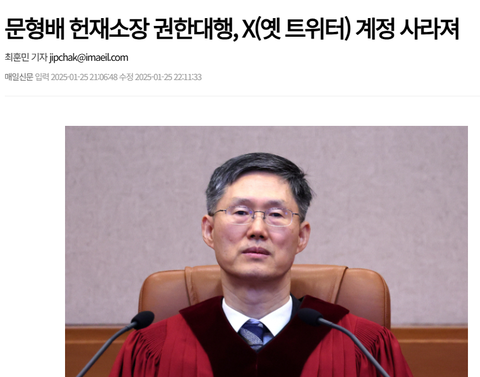 문형배 헌재소장 권한대행, X(옛 트위터) 계정 사라져 - 매일신문