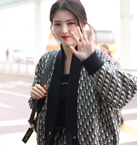 배우 한소희가 해외 일정을 위해 지난 22일 인천국제공항에 도착해 프랑스 파리로 출국하기 전 인사를 하고 있다. 사진=뉴스1