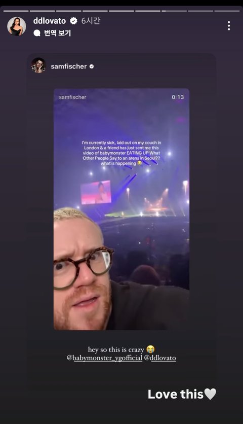 어제 솔로 무대에서 데미로바토 노래 불렀는데 데미가 인스타 스토리로 공유함
