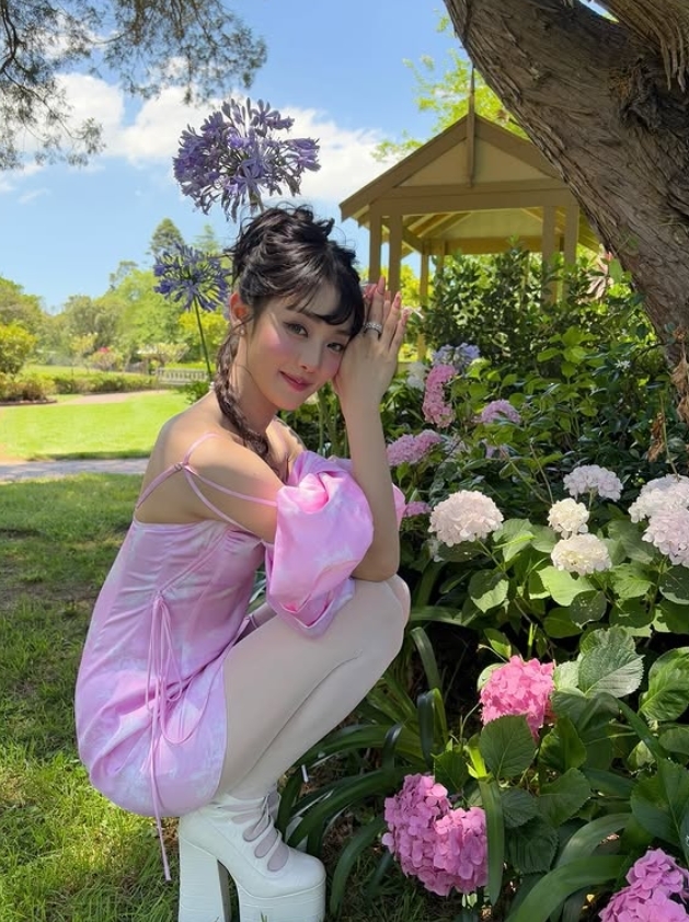 민니 소셜미디어공개된 사진에는 핑크색 원피스를 입고 있는 민니의 모습이 담겨있다. 동화 속 공주 같은 비주얼이 시선을 사로잡는다.