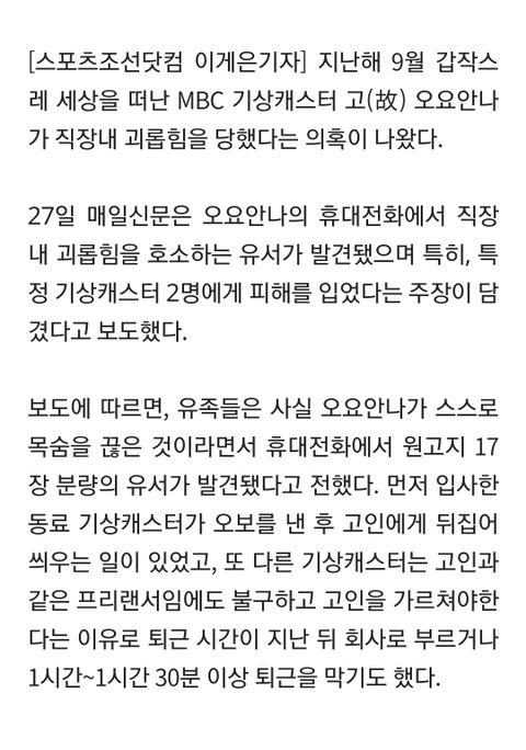 mbc 기상캐스터 극단선택 추정