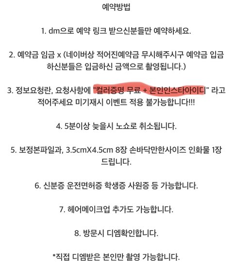 DM 솟 “컬러증명 무료 + 인스타 아이디“로 적힌걸