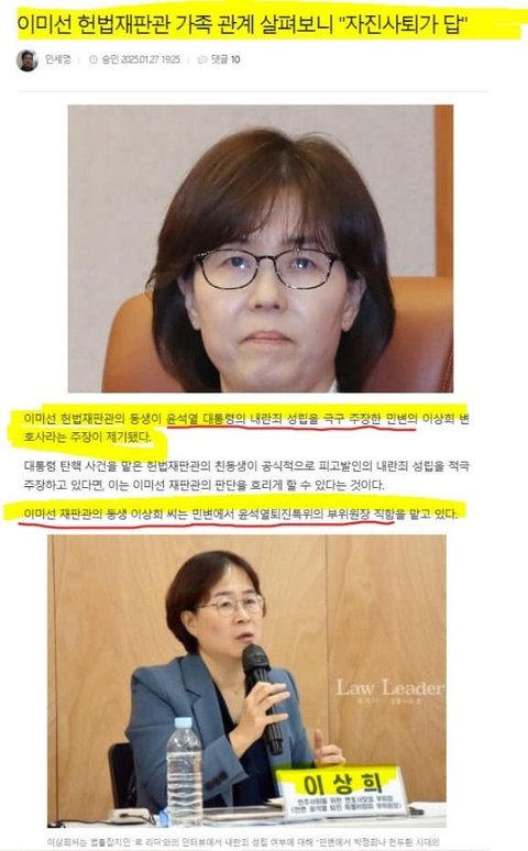 [단독] 헌재 이미선 친동생 "윤석열 퇴진특위 부위원장"으로 밝혀져..