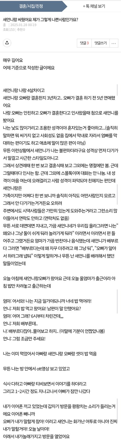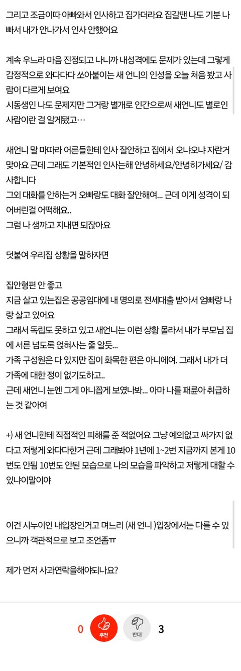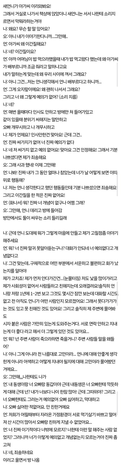 (원글지킴)새언니랑 싸웠어요 제가 나쁜사람인가요?