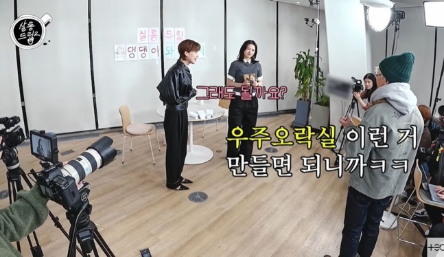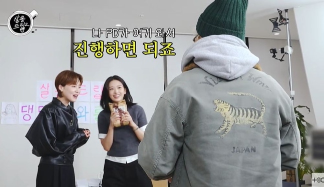 그러자 장도연은 '미지의 존재'인 김태호 피디를 소개했고, 김태호는 "언제 오나 기다리고 있었다"며 깜짝 등장했다. 김태호는 선물을 건네며 "자주 놀러 와라. '우주오락실' 이런 거 만들면 되니까. 나 피디가 여기서 진행하면 되죠"라고 너스레를 떨었다.