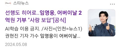 생일 기념 세부 내역으로는 창원경남웅사랑방(240만 원), 영웅시대밴드(나눔모임 150), 충주영웅시대(340), 영웅시대제주(500), 영웅시대충북(물품 200), 영주예천영웅시대(빵 다과), 위드히어로광주전남(616), 영웅시대웅패밀리(350), 강원영웅시대(생수1800개), 진주영웅시대(735), 인천웅S사랑방(616), 거제영웅시대(213), 영웅시대부산봉사방(616), 영웅시대정읍무지개방(300), 부산영웅시대스터디하우스(1000), 위드히어로대전세종(616), 팬밴드웅기종기(553), 영웅시대안동스터디방(200), 영웅시대통영(300), 순천영웅시대(383), 영웅시대경기북부사랑방(김치300kg), 봉사나눔방라온(1261), 봉사나눔방라온(260), 영웅시대울산(616), 여수영웅시대온기(260), 영웅시대전북방(631), 영웅바라기서포터즈(휠체어 616), 안산영웅시대(300), 위드히어로강원(700), 시애틀영웅시대(616), 남원순창영웅시대(300), 철원백골영웅시대(300), 대구별빛스터디방(700), 영웅시대광주전남(920), 대구영웅봉사회(장애우놀이공원투어), 대구영웅시대투게더방(300), 강원영웅시대(취약계층봉사), 광주전남영웅시대보금자리(616), 미국동부스터디방(500), 영웅시대밴드(나눔모임 500), 영웅시대밴드(나눔모임(1000), 영웅시대서울동북부(616), 영웅시대프래시몹(350), 창원영웅시대웅사모방(온누리상품권 530), 위드히어로경기서울부울경(쌀4톤 1261), 하와이영웅시대(200), 웅바라기스쿨(1227), 영웅시대서부은평방(616), 수원동탄웅벤져스(빵나눔봉사) 등 현금 물품 합계 2억 3624만원이다.