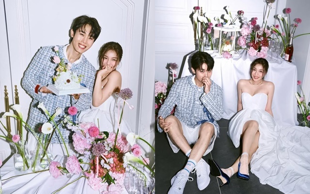 에일리 소셜미디어 / 꼬모스튜디오, 일드한남사진 속 에일리, 최시훈은 각각 웨딩드레스와 턱시도를 입고 달달한 스킨십을 하며 애정을 표하고 있다.
